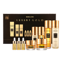 BERGAMO lüks altın cilt bakım seti (9 adet) kore'den yüksek odak winkle-bakımı parlatıcı cilt dengesi zulüm içermeyen